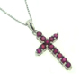 A 14K white gold and ruby cross pendant with total carat weight of 0.78ct. It weighs 1.0