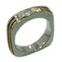 14k. Two-tone Men's Band Ring total weight of Gold 14.2 grams. set with 2 Princess cut