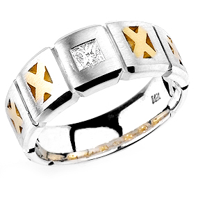 14K WHITE AND YELLOW GOLD BAND 12.60 GRAMS, SET WITH ONE PRINCESS CUT DIAMOND TOTAL WEIGHT 0.26 CT.