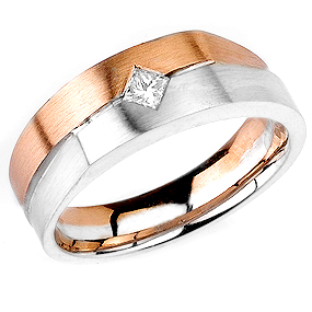 14K WHITE AND PINK GOLD BAND 11.50 GRAMS, SET WITH ONE PRINCESS CUT DIAMOND TOTAL WEIGHT 0.16 CT.